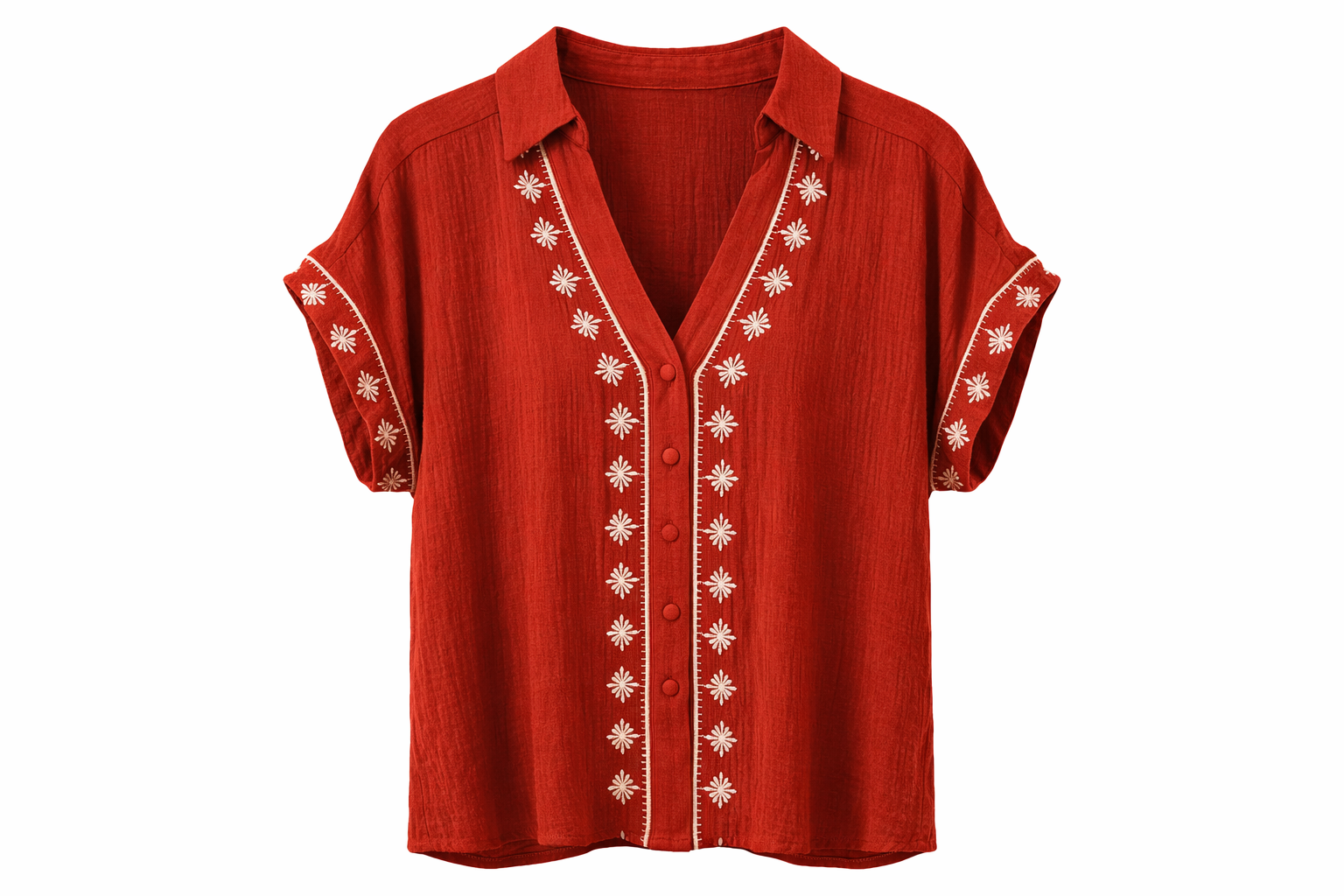 Légère et confortable, cette blouse brodée séduit par sa coupe fluide et ses délicates broderies florales. Son col en V et ses boutons recouverts apportent une touche féminine et élégante, parfaite pour un look bohème chic au quotidien.